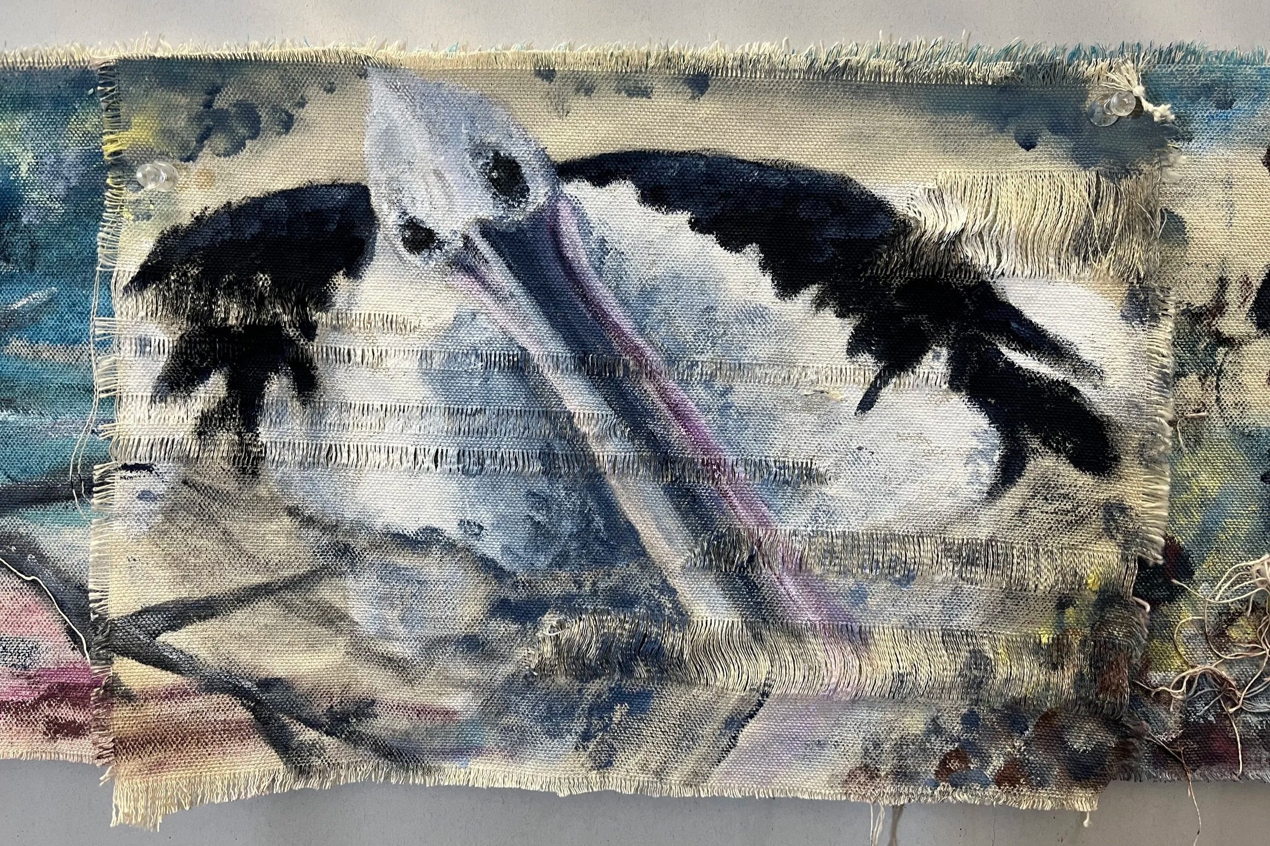 Kirsten Wehner, Lagoon Evening (detail), acrylic paint and pastels on raw canvas, 2025. Image: the artist